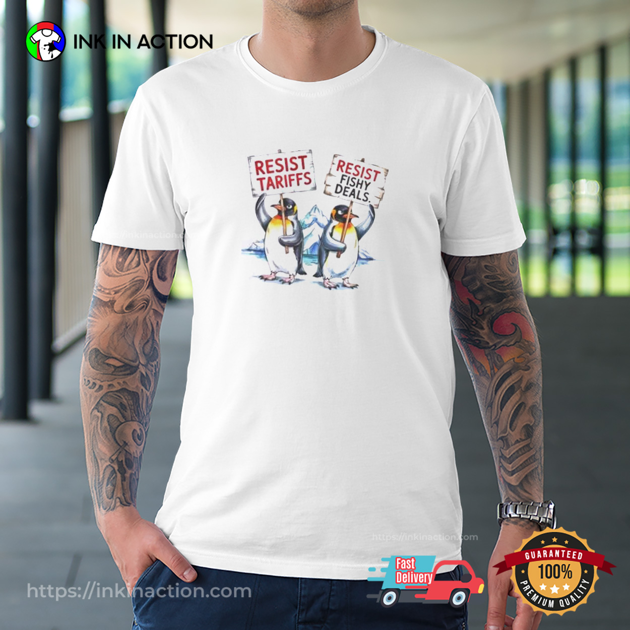 Penguin Resist Tariffs Resist Fishy Deals Funny Political T-shirt