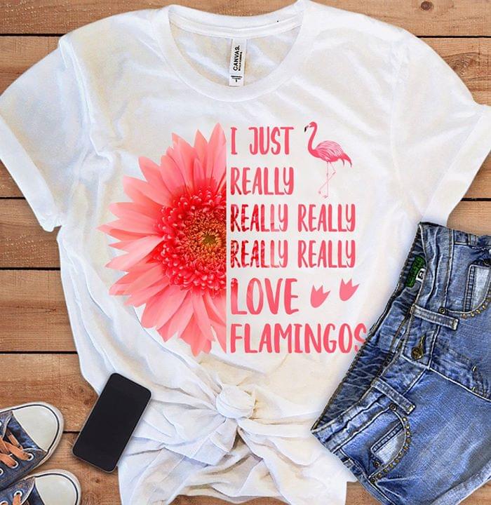 Pink Sunflower I Just Really Love Flamingos Shirt