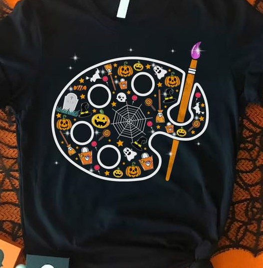 Pumpkins Ghosts Brooms Painting Palette Brush Halloween Shirt