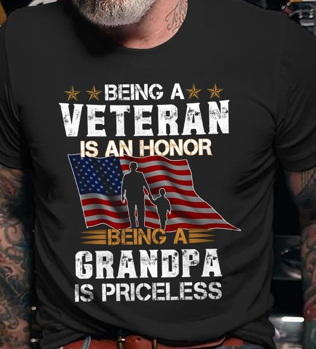 Being A Veteran Is An Honor Being A Grandpa Is Priceless Family Flag Of America Shirt