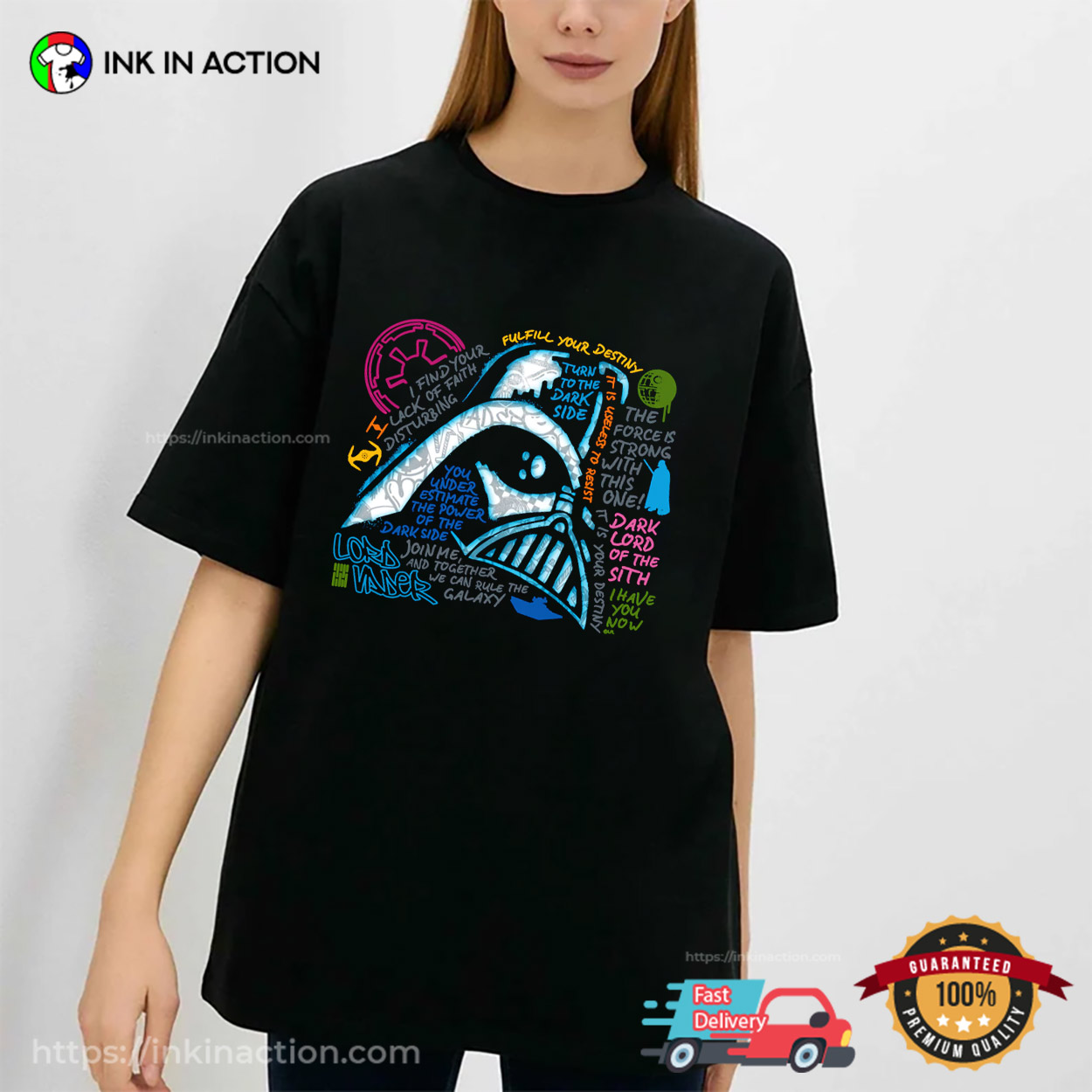 Retro Star Wars Darth Vader Neon Chalkboard Art Quotes T-shirt