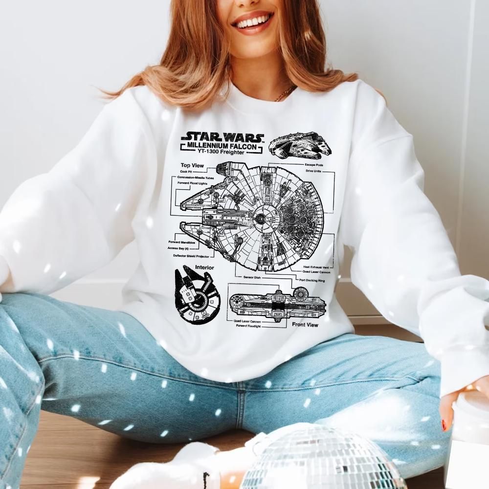 Retro Star Wars Millennium Falcon Starship Schematics Graphic Vuitino Shirt