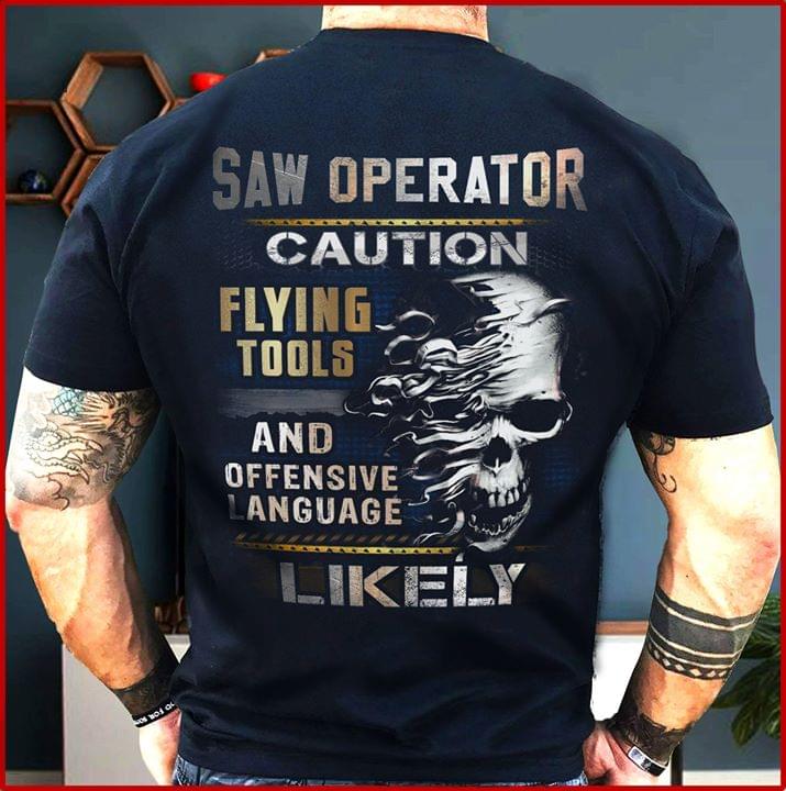 Saw Operator Caution Flying Tools And Offensive Language Likely Shirt (back Side)