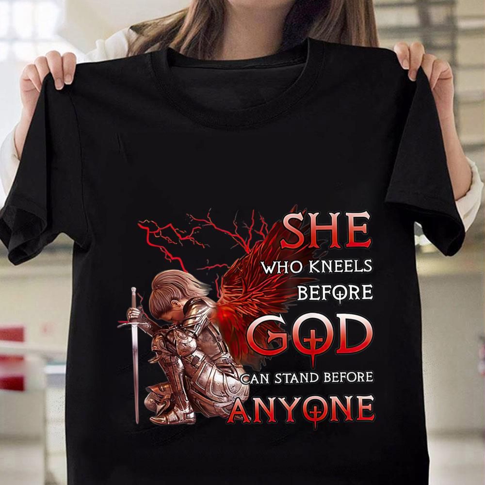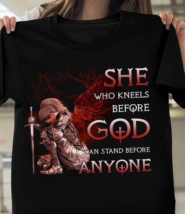 She Who Kneels Before God Can I Stand Before Anyone Lady Girl Knight Shirt