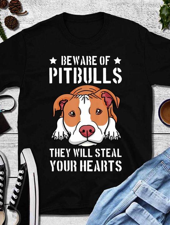 Beware Of Pitbulls They Will Steal Your Hearts Cartoon Dog Shirt