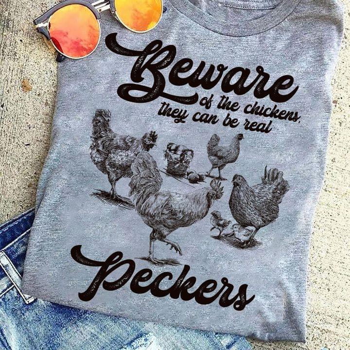 Beware Of The Chicken They Can Be Real Peckers Chickens Shirt