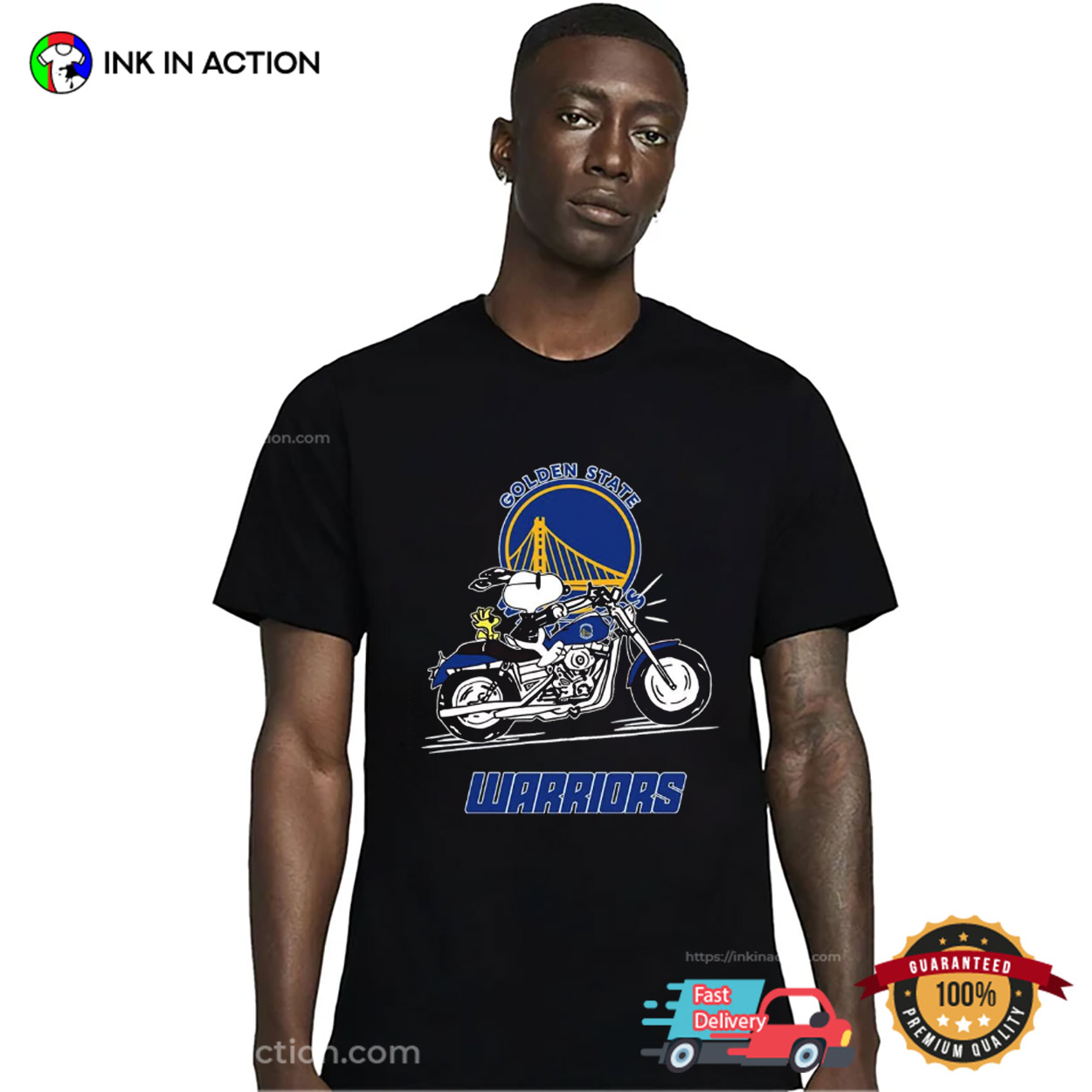 Snoopy And Woodstock Driving Motorbike Golden State Warriors T-shirt