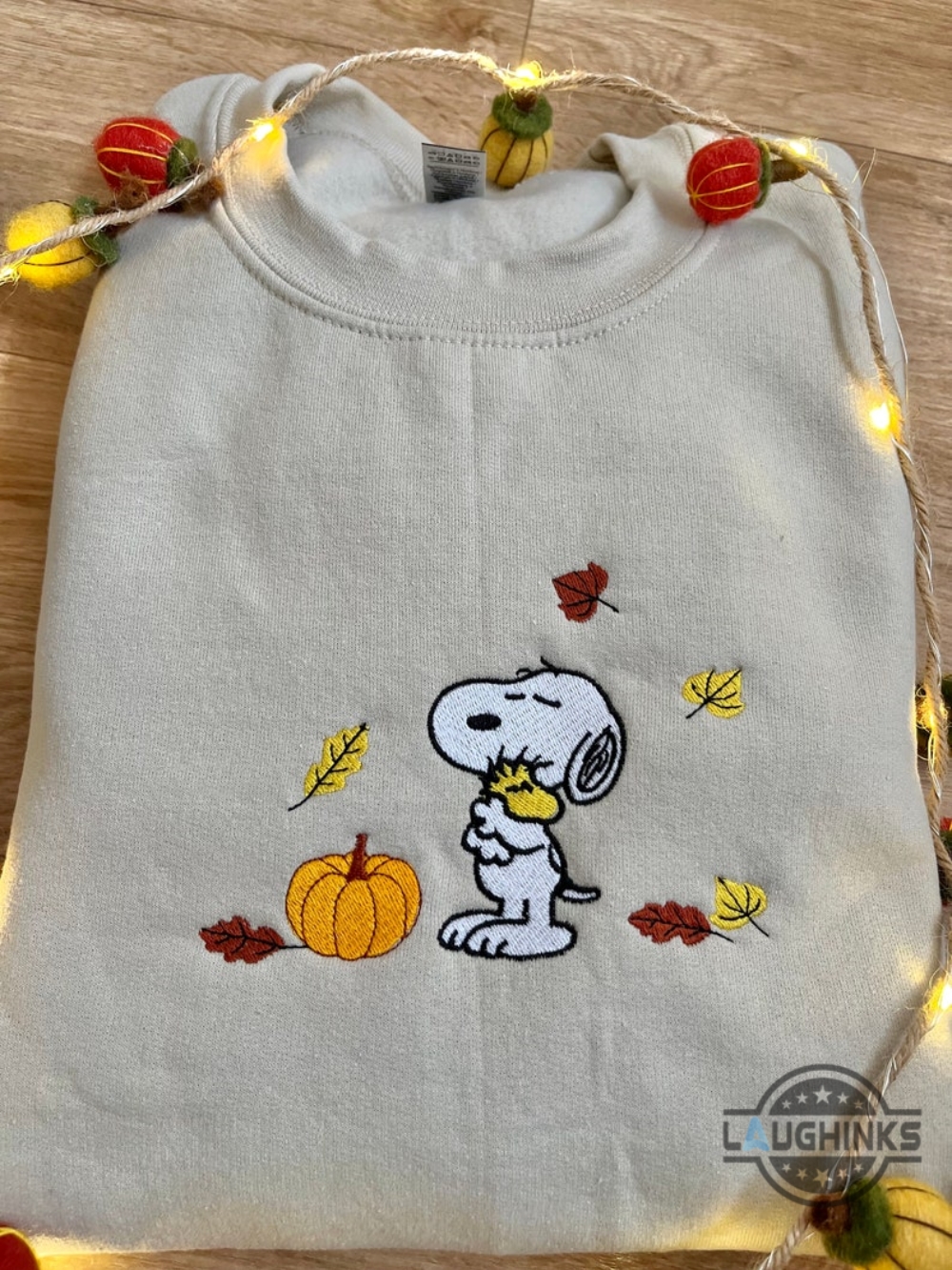 Snoopy And Woodstock Hug Gif Fall Embroidered Shirt Halloween Gift