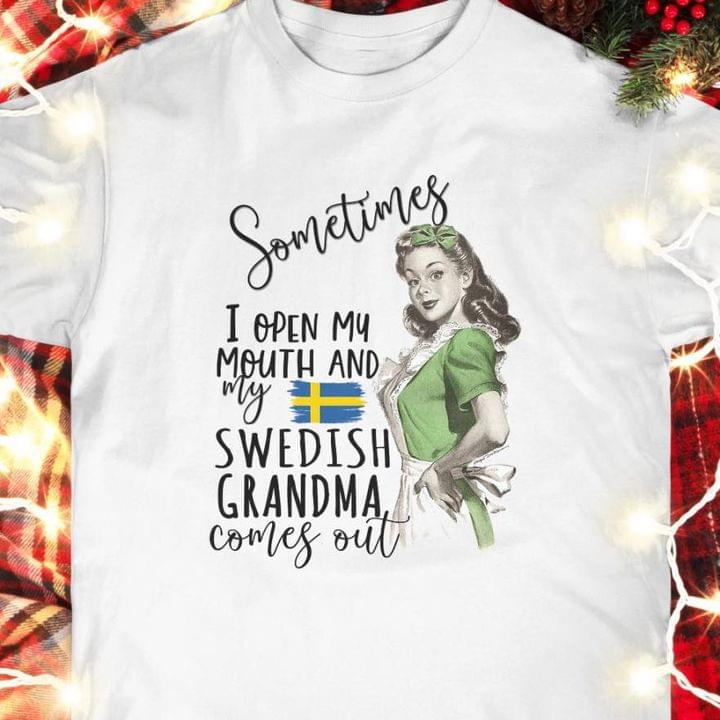 Sometimes I Open My Mouth And My Swedish Grandma Comes Out Lady Girl Flag Of Sweden Shirt