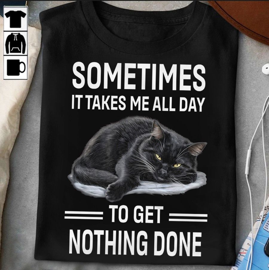 Sometimes It Takes Me All Day To Get Nothing Done, Lazy Black Cat Shirt