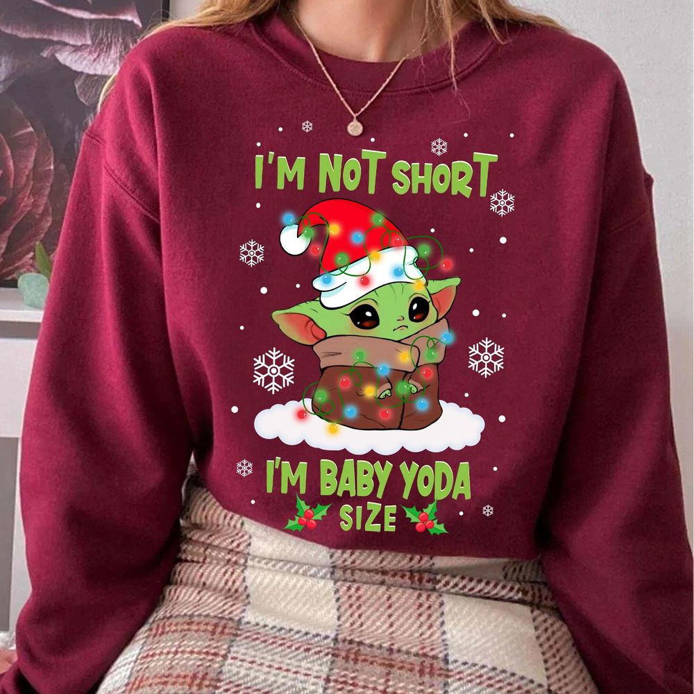 Star Wars Baby Yoda Im Not Short Santa Hat Christmas Lights Holiday Vuitino Shirt