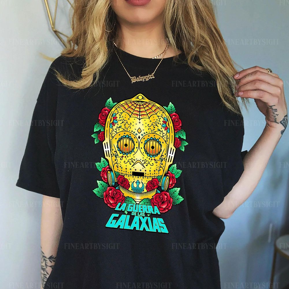 Star Wars C 3po Sugar Skull Style Portrait Vuitino Shirt
