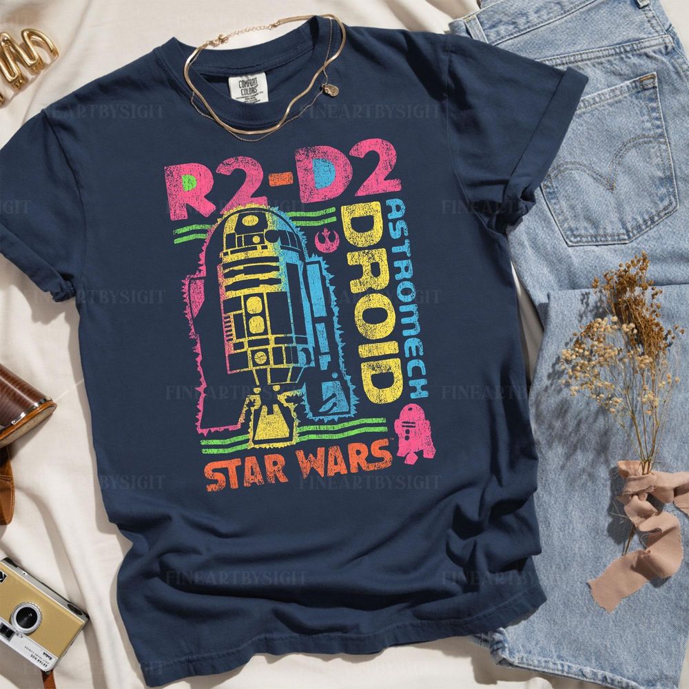 Star Wars Distressed Neon R2 D2 Vuitino Shirt