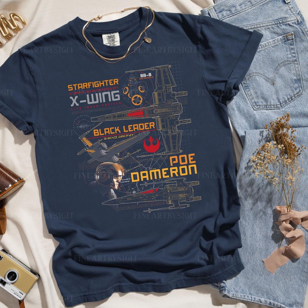 Star Wars Last Jedi Poe Dameron Black Leader X Wing Vuitino Shirt