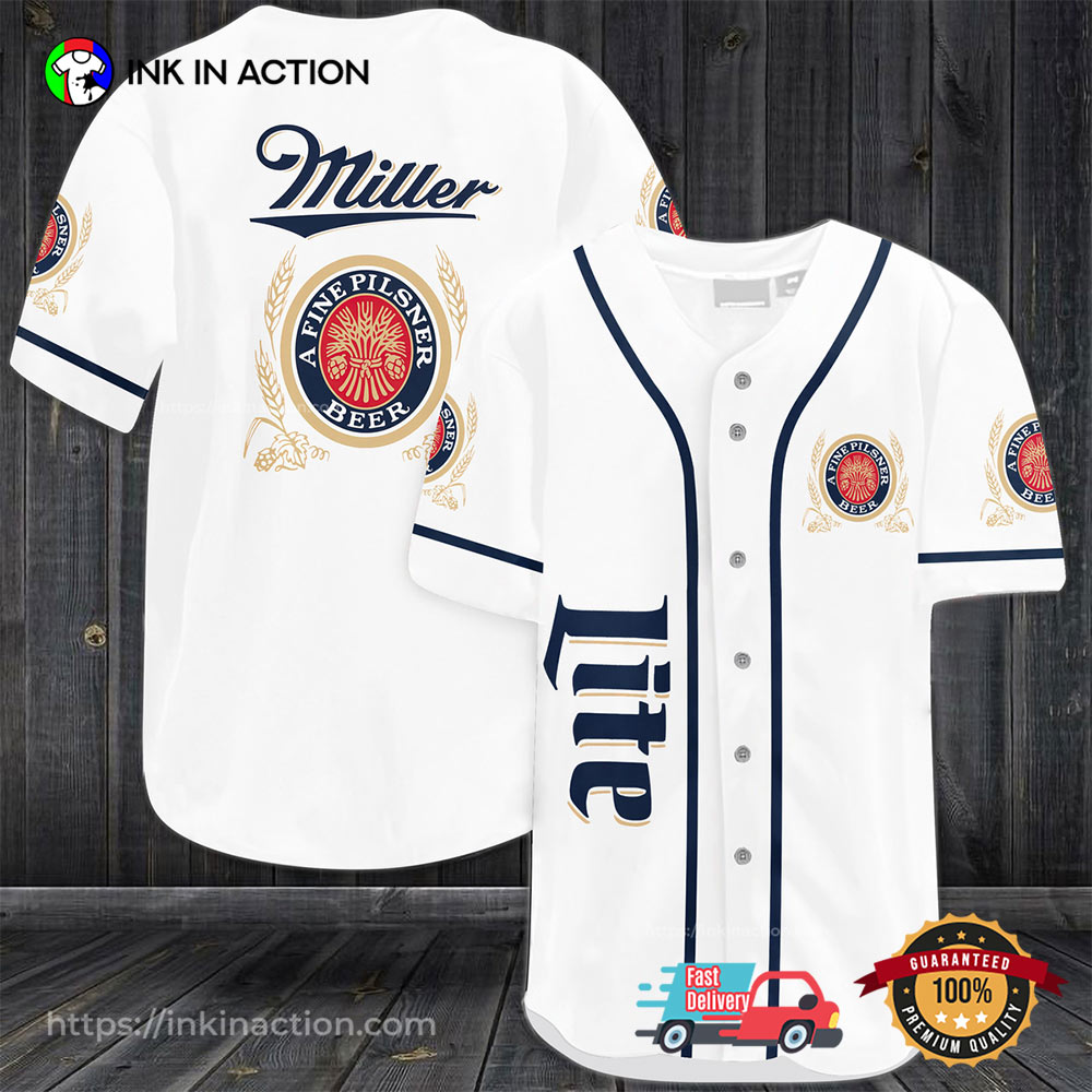 Black Miller Lite Fine Pilsner Beer Baseball Jersey