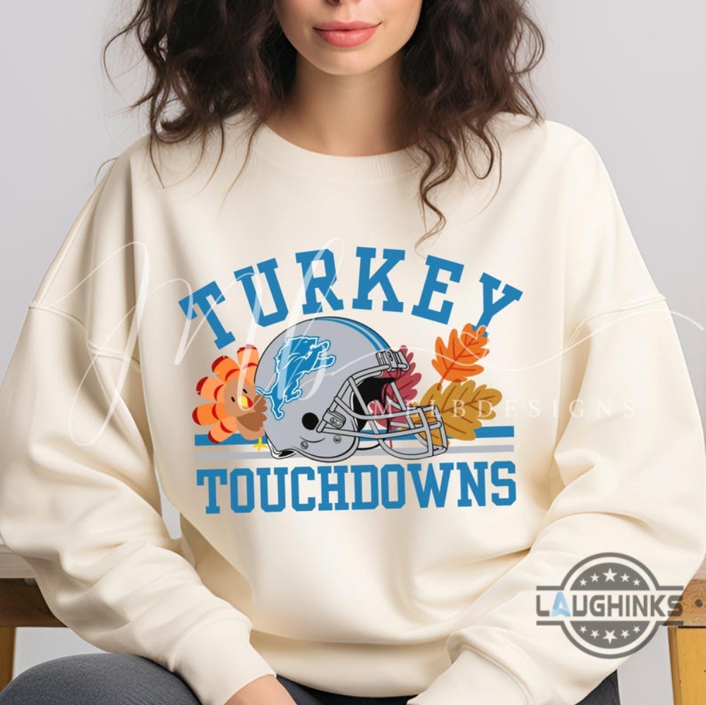 Thanksgiving Football Detroit Lions Crewneck Sweatshirt T Shirt Hoodie Turkey And Touchdowns Vintage Game Day Shirt Laughinks 1