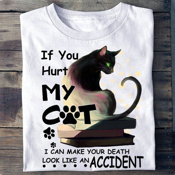 Blact Cat And Books, If You Hurt My Cat, I Can Make Your Death Look Like An Accident Shirt