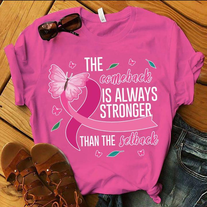 The Comeback Is Always Stronger Than The Setback Pink Butterfly Ribbon Shirt