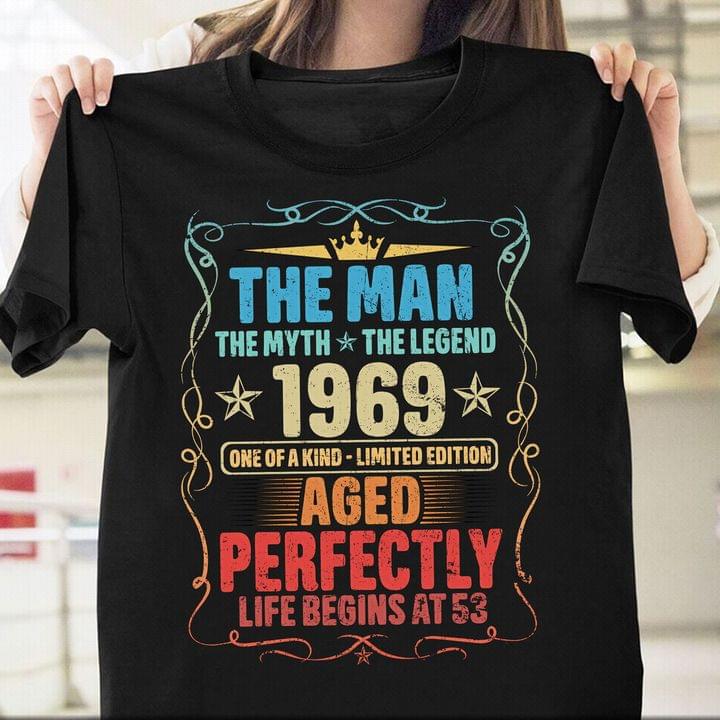 The Man The Myth The Legend 1969 One Of A Kind Limited Edition Aged Perfectly Life Begins At 53 Shirt