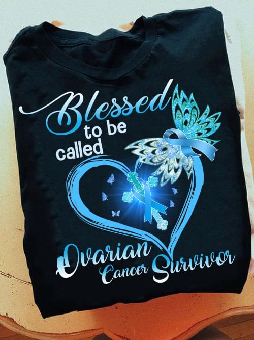 Blessed To Be Called Ovarian Cancer Survivor Blue Heart Ribbon The Holy Cross Shirt