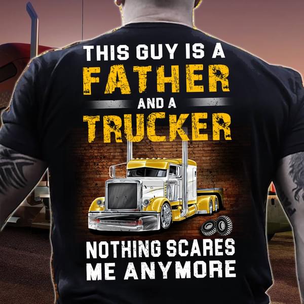 This Guy Is A Father And A Trucker Nothing Scares Shirt (back Side)