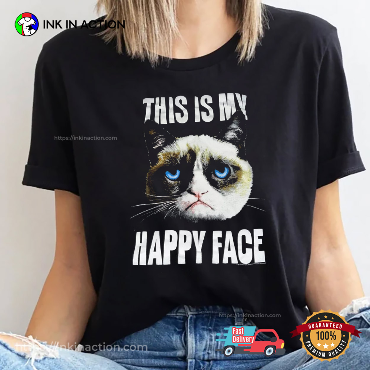 This Is My Happy Face Funny Grumpy Cat Face T-shirt