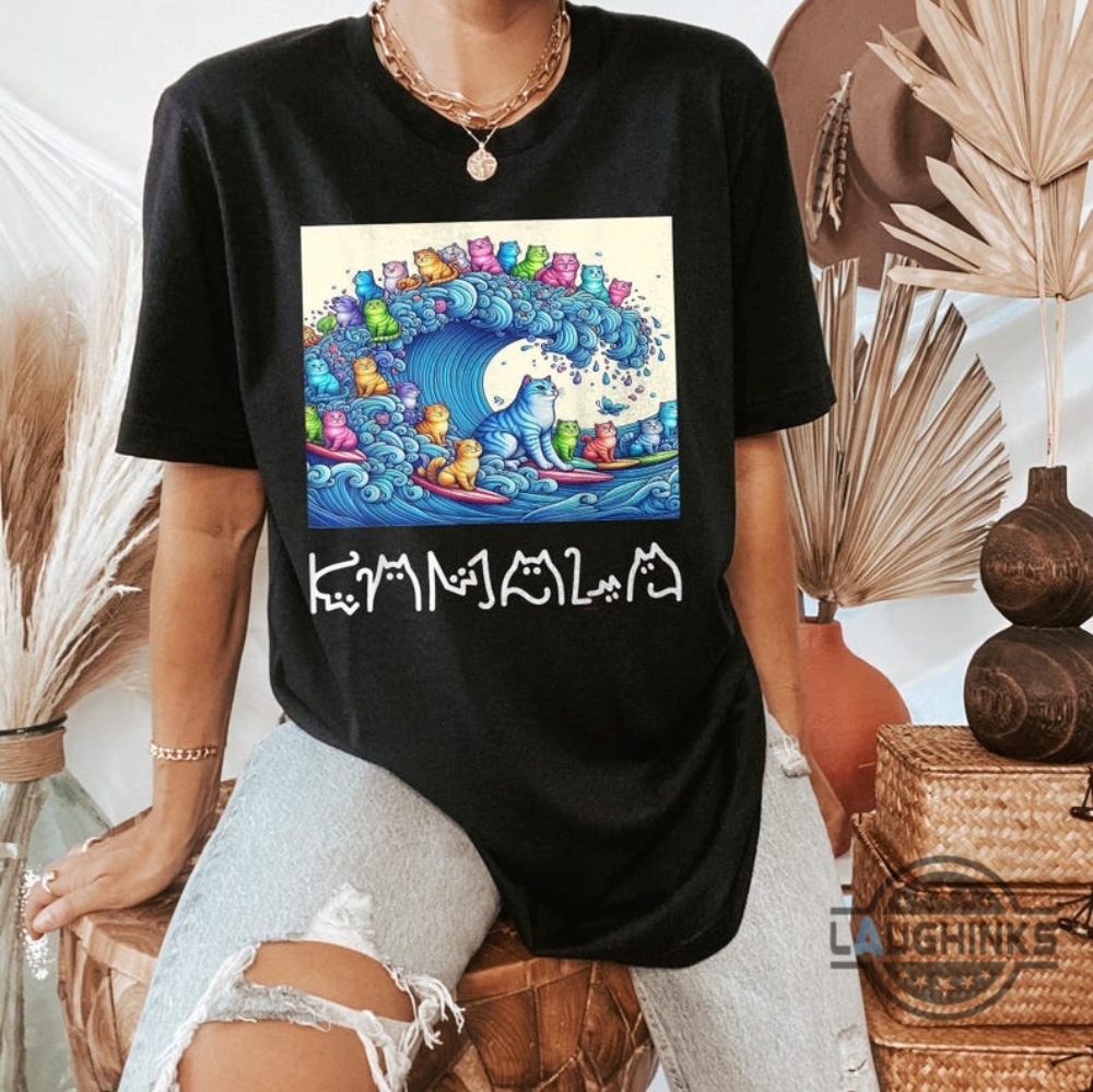 Blue Wave Kamala Cat Shirt Inspired By Japanese Artist