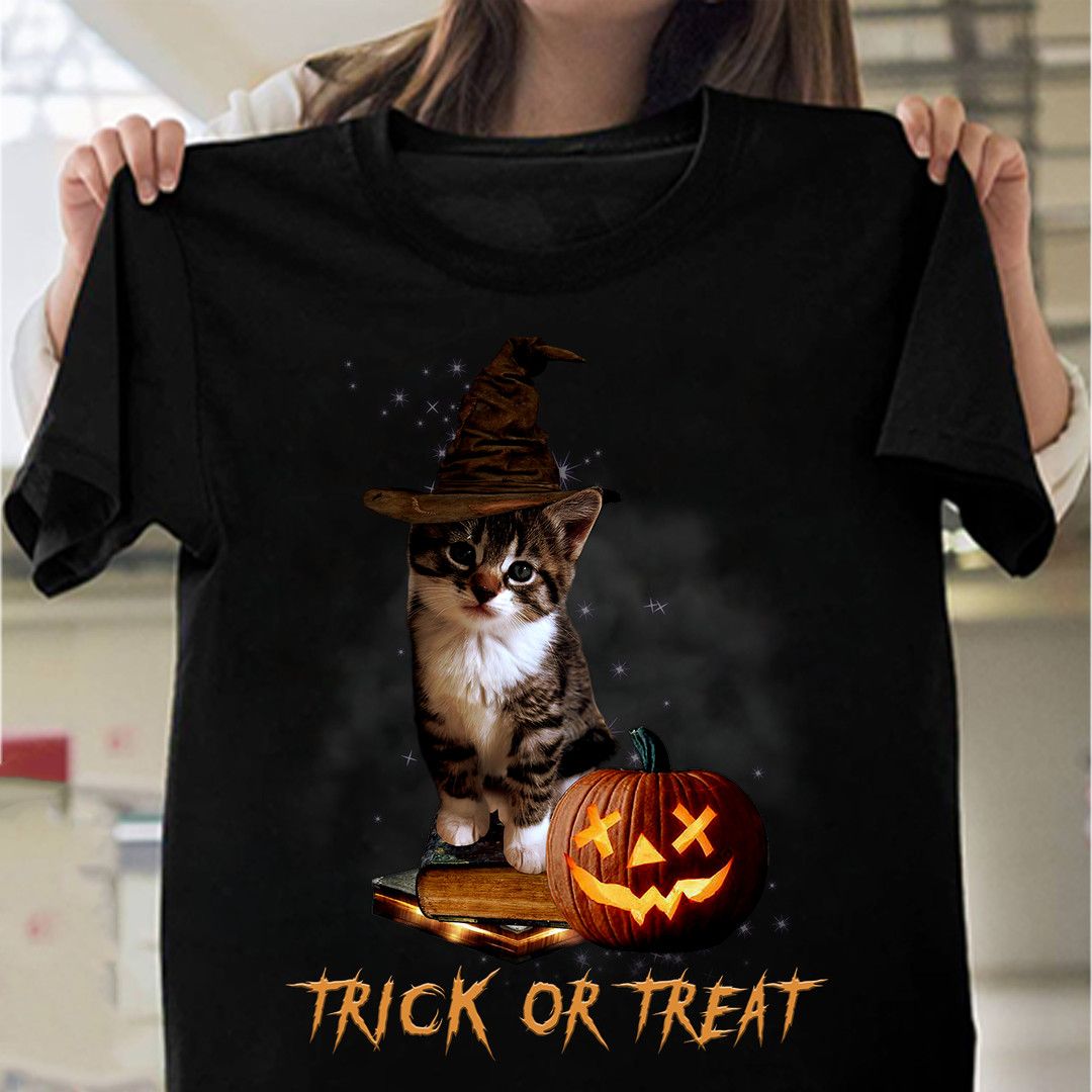 Trick Or Treat, Cute Cat Pumpkin Book Halloween Shirt