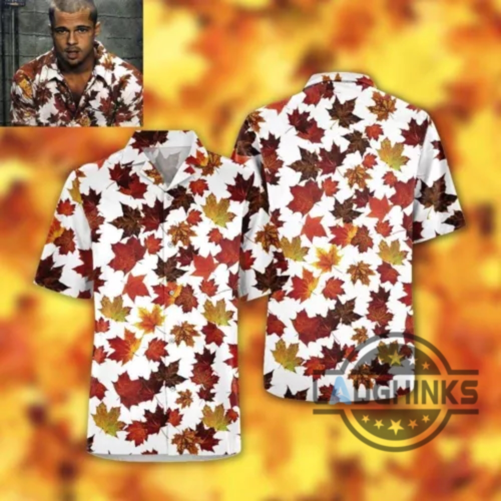 Tyler Durden Hawaiian Shirt Maple Leaf Brad Pitt David Finchers Fight Club Aloha Button Up Shirt Laughinks 1