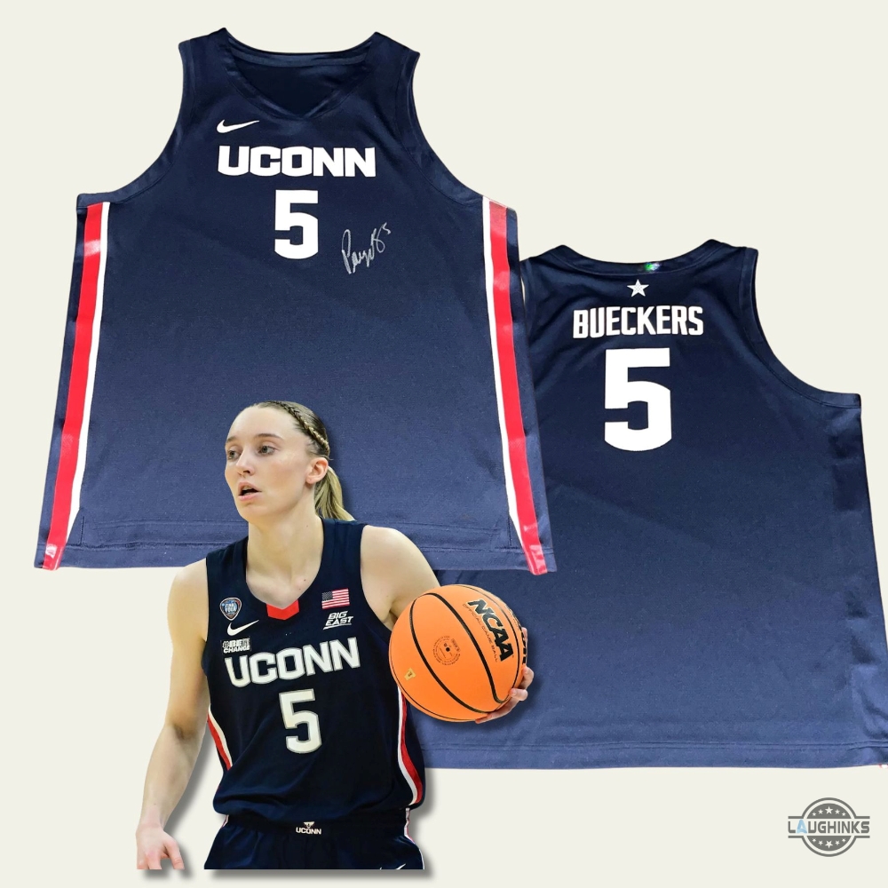 Uconn Huskies Paige Bueckers Signed Reprinted Nike Basketball Jersey Shirt Number 5 Laughinks 1