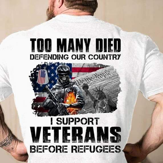 Veterans Shirt, Too Many Died Defending Our Country, I Support Veterans Before Refugees