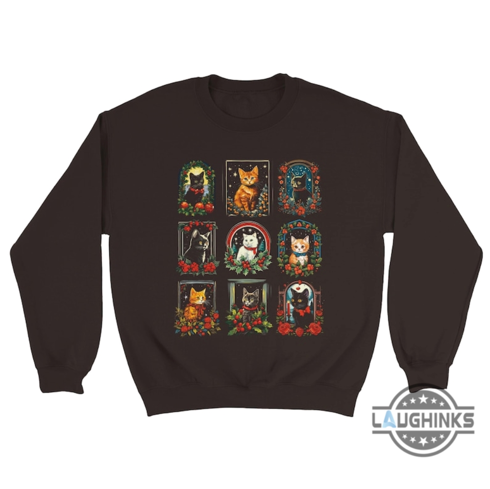 Vintage Christmas Cat Sweatshirt T Shirt Hoodie Gift For Cat Moms And Dads Meowy Christmas Shirt Laughinks 1