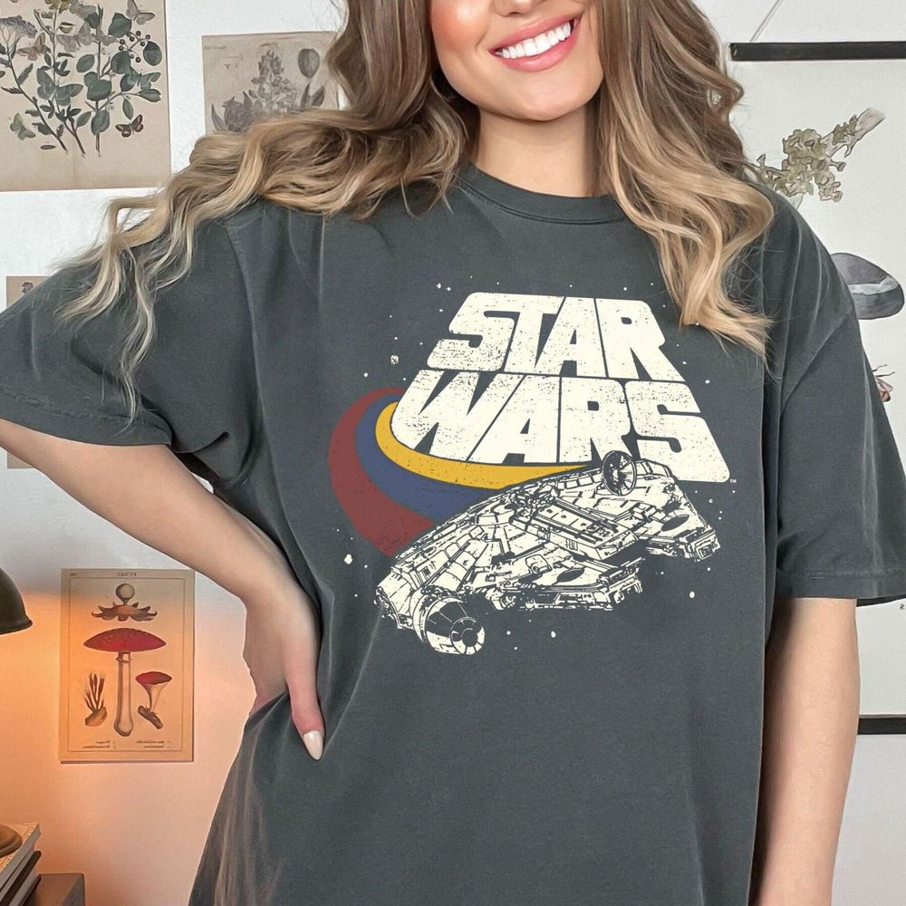 Vintage Disney Star Wars Millennium Falcon Ship Three Stripes Vuitino Shirt
