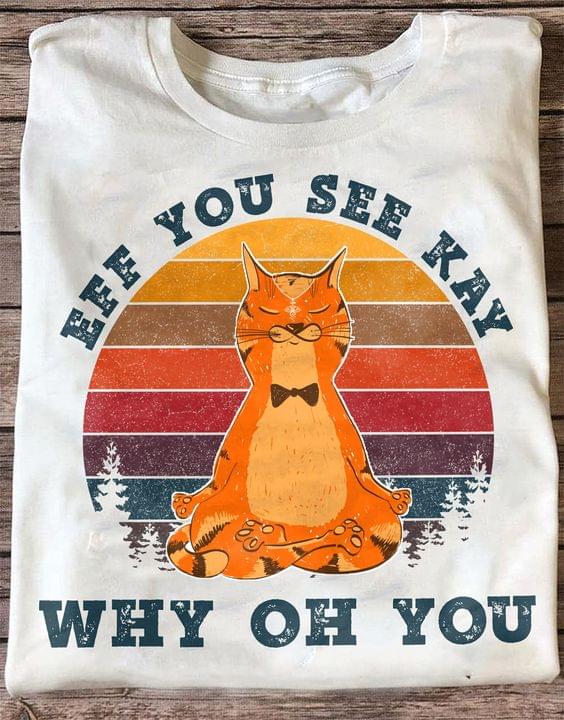 Vintage Eff You See Kay Why Oh You Cat Meditation Flowers Shirt