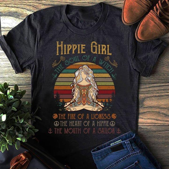 Vintage Hippie Girl The Soul Of A Witch The Fire Of A Lioness The Heart Of A Hippie Shirt