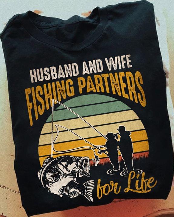 Vintage Husband And Wife Fishing Partners For Life Family Shirt
