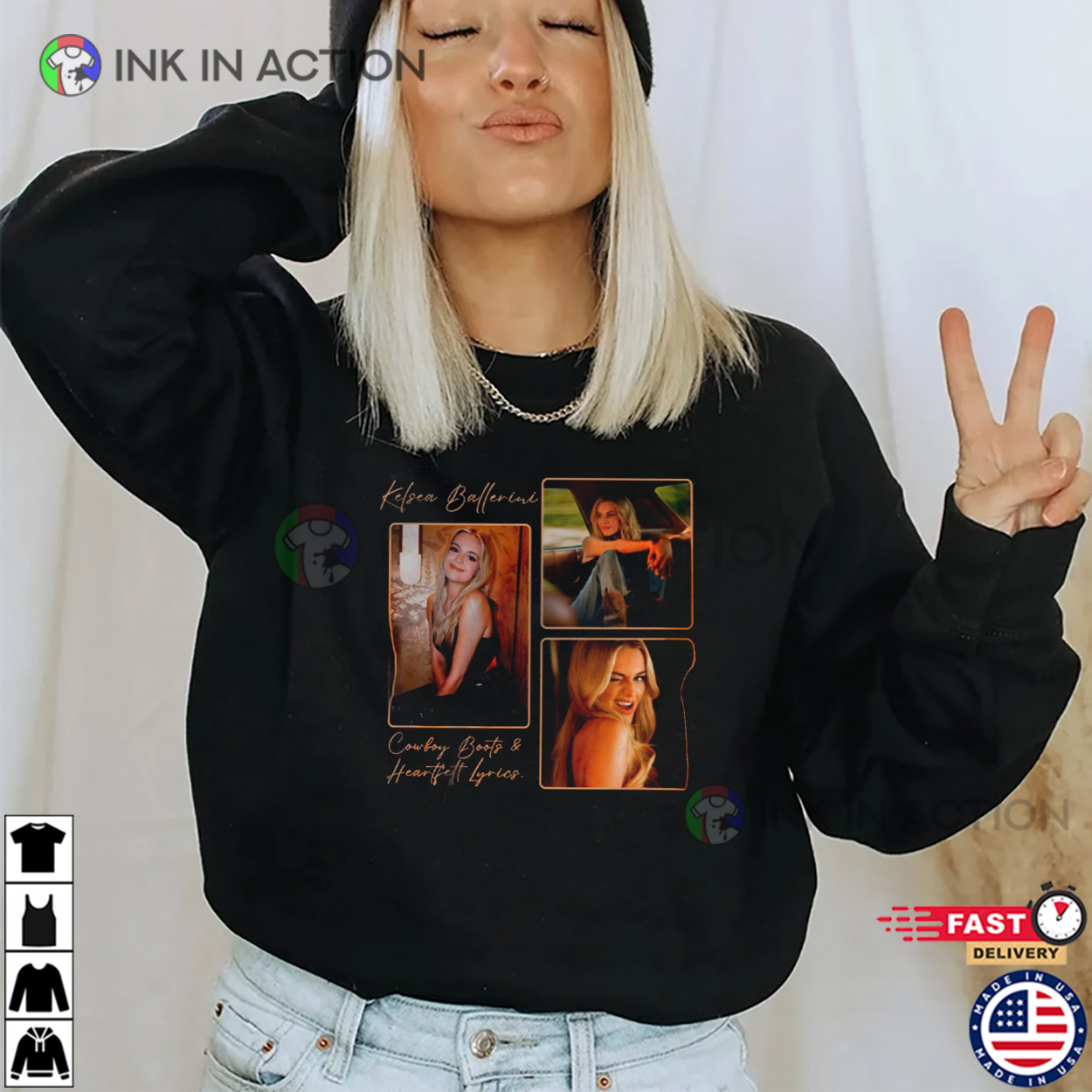 Vintage Kelsea Ballerini Cowboy Boots N Heartfelt Lyrics T-shirt