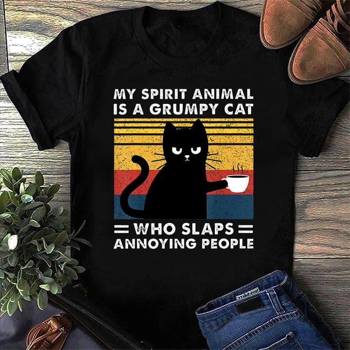 Vintage My Spirit Animal Is A Grumpy Cat Who Slaps Annoying People Shirt