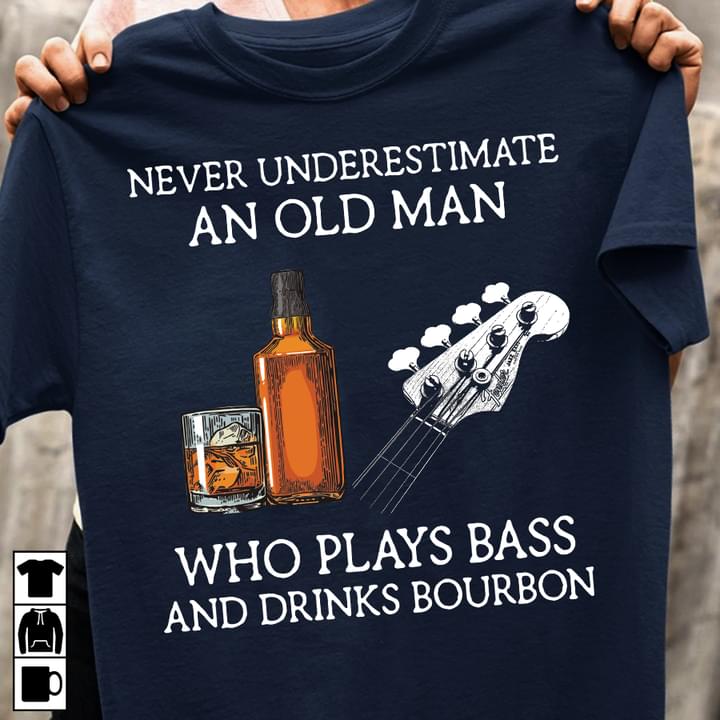 Vintage Never Underestimate An Old Man Who Plays Bass And Drinks Bourbon Shirt