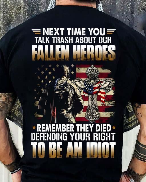 Vintage Old Shirt, Next Time You Talk Trash About Our Fallen Heroes, Remember They Died Defending Your Right To Be An Idiot