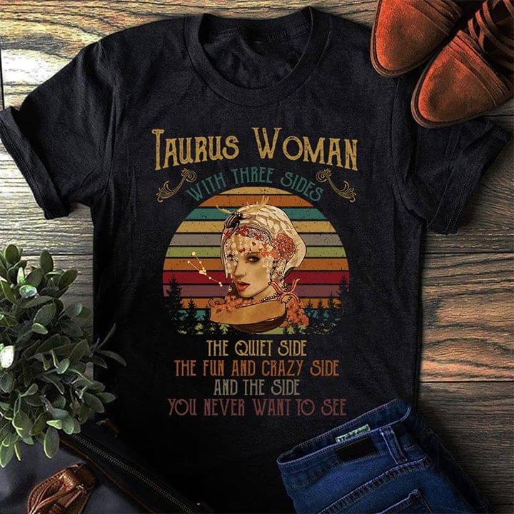 Vintage Taurus Woman With Three Sides The Quiet Side The Fun And Crazy Side Shirt