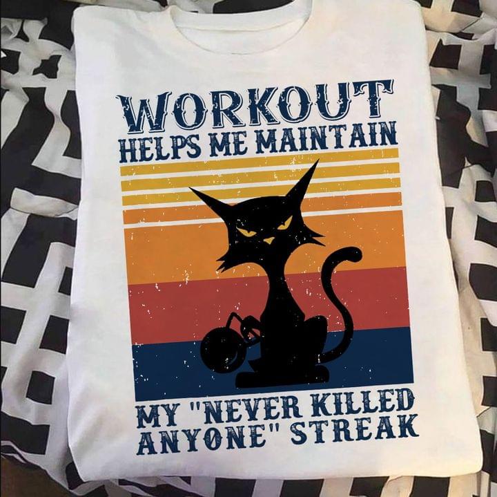 Vintage Workout Helps Me Maintain My Never Killed Anyone Streak Black Cat Shirt