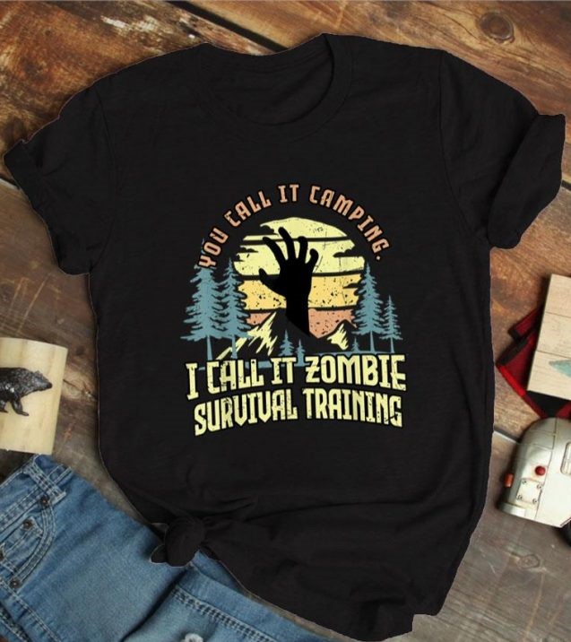 Vintage You Call It Camping I Call It Zombie Survival Training Landscape Hand Shirt