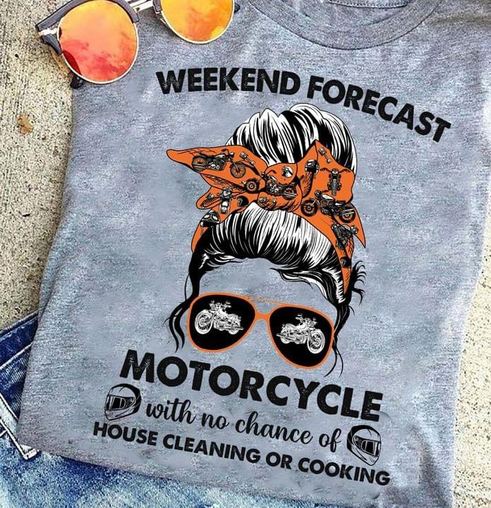Weekend Forecast Motorcycle With No Chance Of House Cleaning Or Cooking Biker Girl Shirt