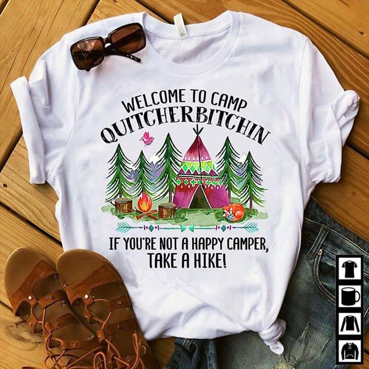 Welcome To Camp Quitcherbithin If You're Not A Happy Camper Take A Hike Camping Fire Tent Shirt