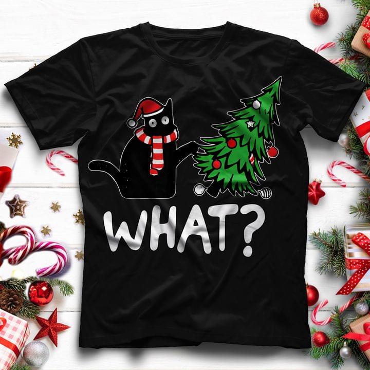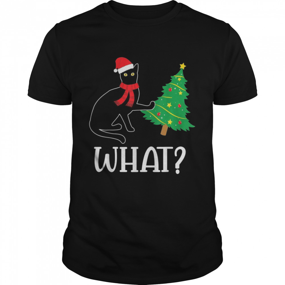 What? Christmas Tree Black Cat Santa Claus Shirt