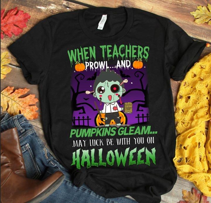 When Teachers Pumpkins Gleam May Luck Be With You On Halloween Shirt