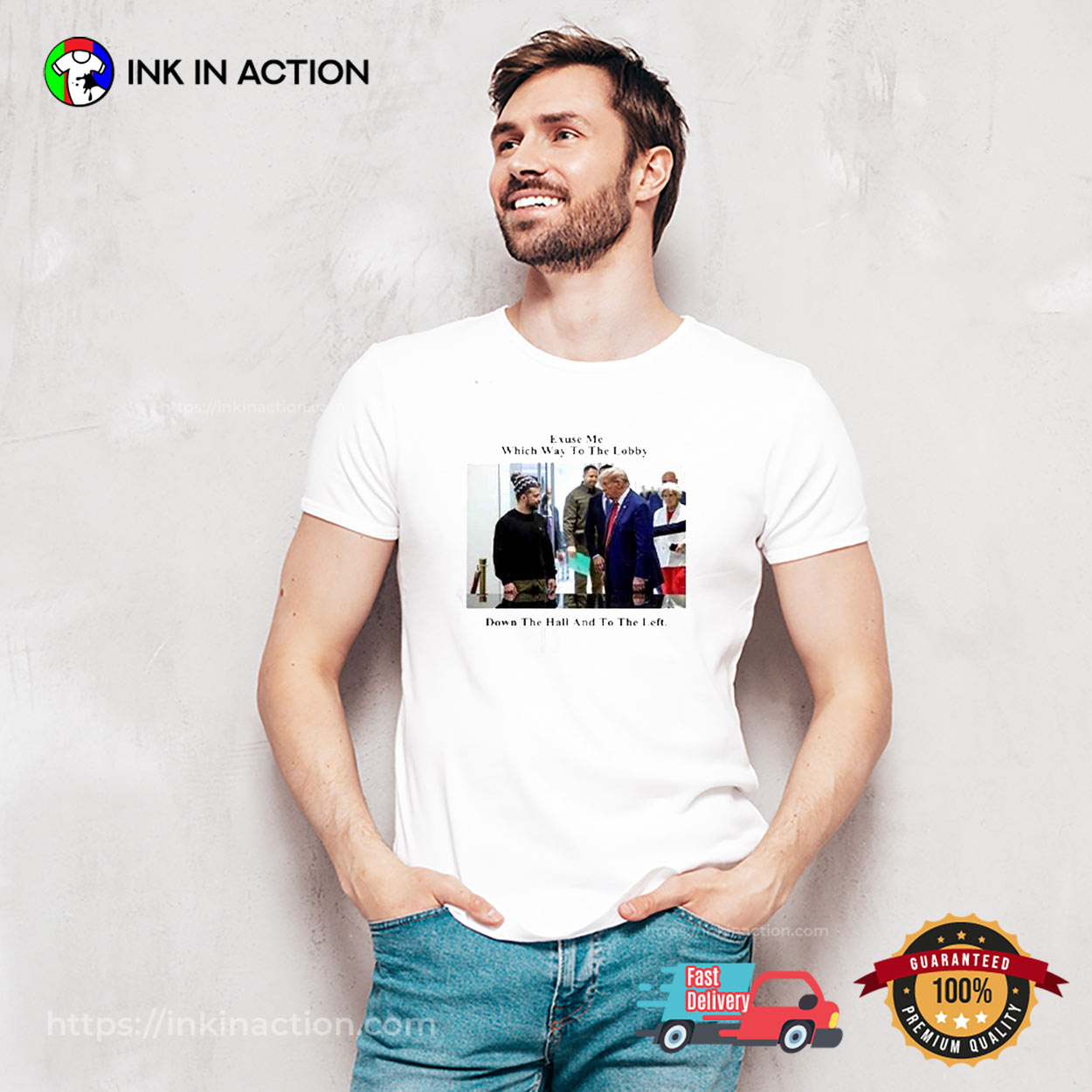 Which Way To The Lobby Funny Zelensky And Trump T-shirt