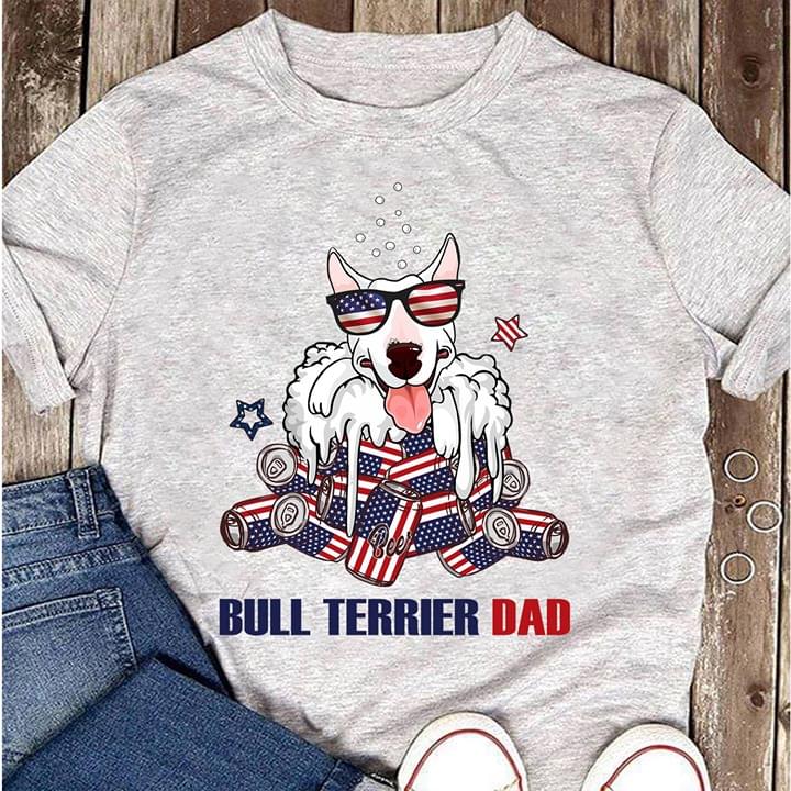 White Bull Terrier Dad And American Beer Shirt