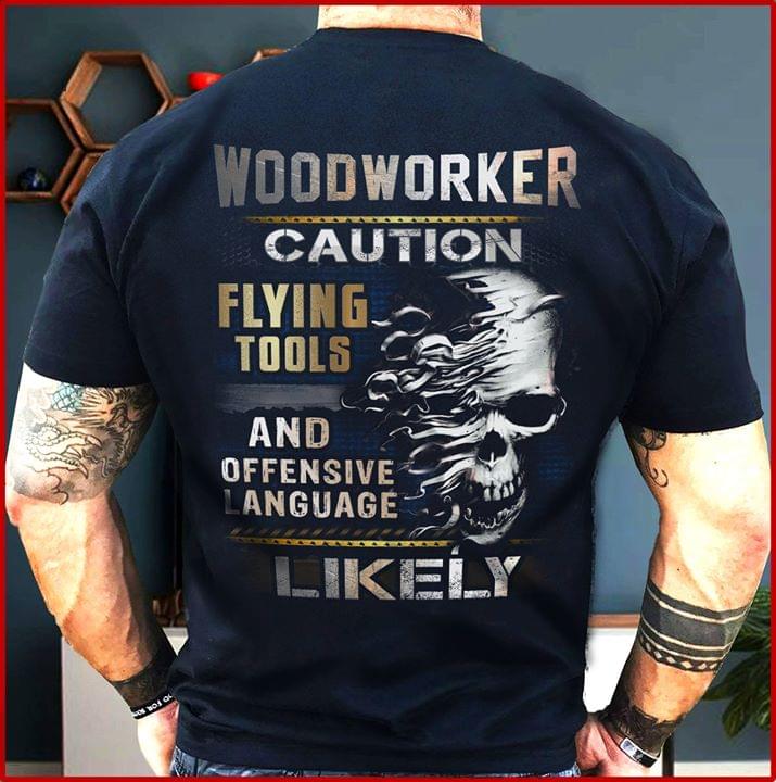 Woodworker Caution Flying Tools And Offensive Language Likely Shirt (back Side)
